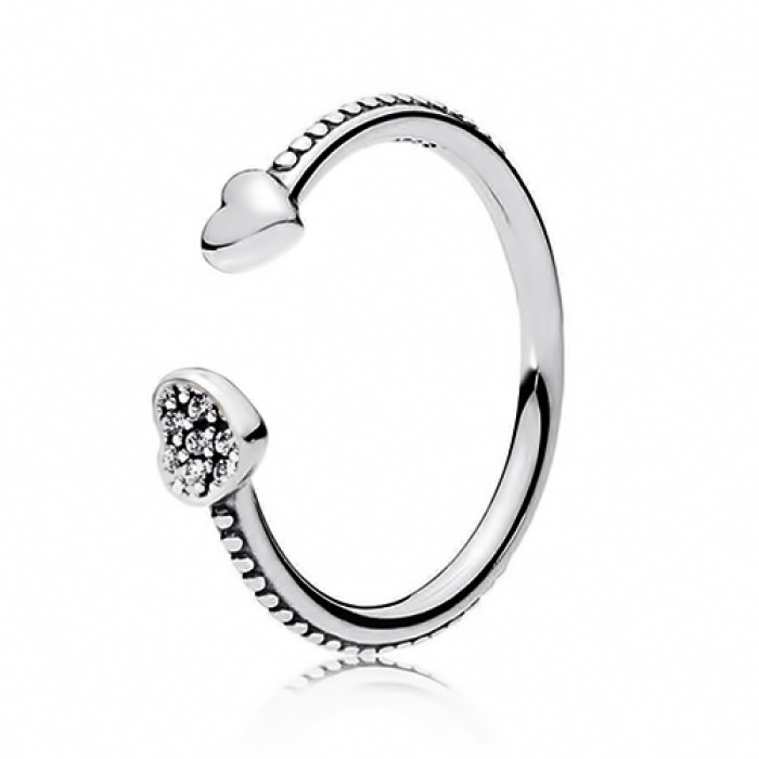 Срібна каблучка Open Love з серцями та фіанітами