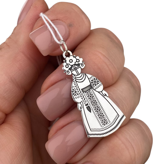 Відкрийте для себе унікальну ювелірну прикрасу «Берегиня», створену за мотивами традиційної української ляльки-мотанки. Це не просто стильний аксесуар, а символічний оберіг, який уособлює захист роду, дому та родини, материнську турботу, достаток і щасливу долю.