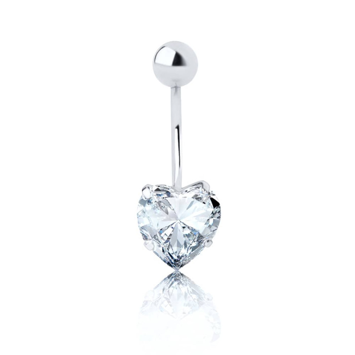 срібний пірсинг у пупок, пірсинг серце срібло, жіночий пірсинг у пупок, пірсинг серце фіаніт