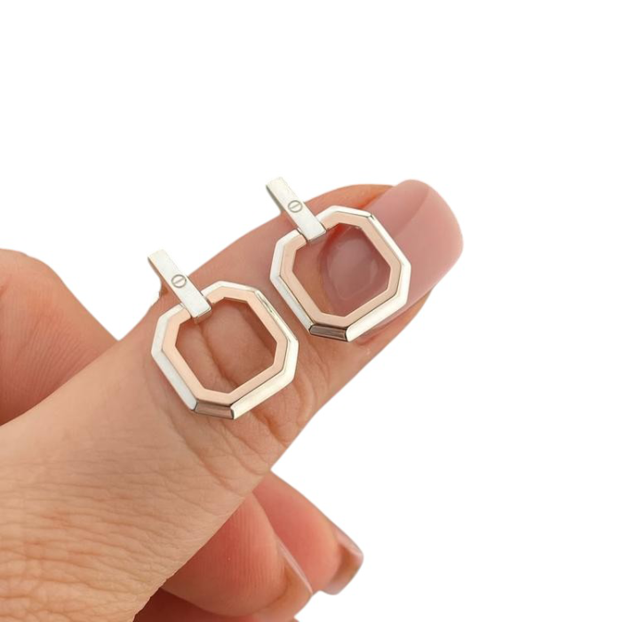 Жіночі срібні сережки-пусети з золотими вставками - створені для прихильниць трендової геометрії